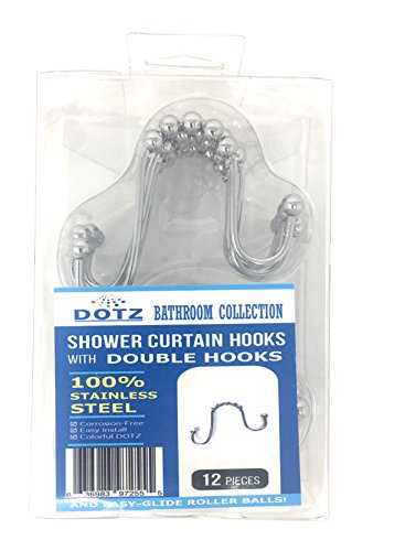 DOTZ Shower Curtain Ring, U-Shapes Double Hooks, Chrome, Pack of 12