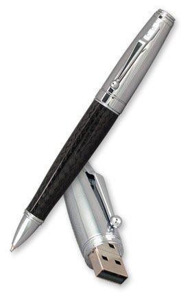 -. Feature : A High quality 4-gigabyte memory flash drive / High performance twist-advance ballpoint pen / Unique shape for maximum writing comfort / Chrome and Carbon fiber construction for strenght and beauty / Includes mini screwdriver to facilitate refill changes