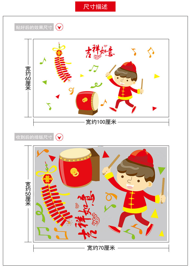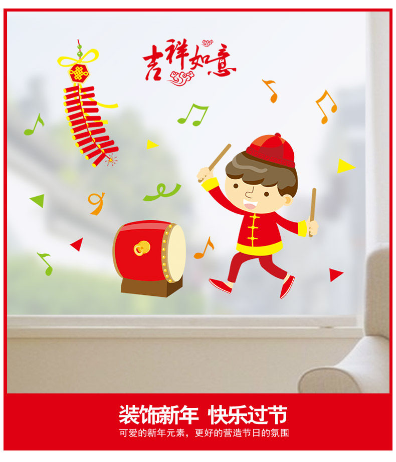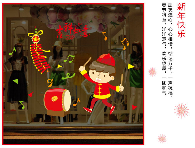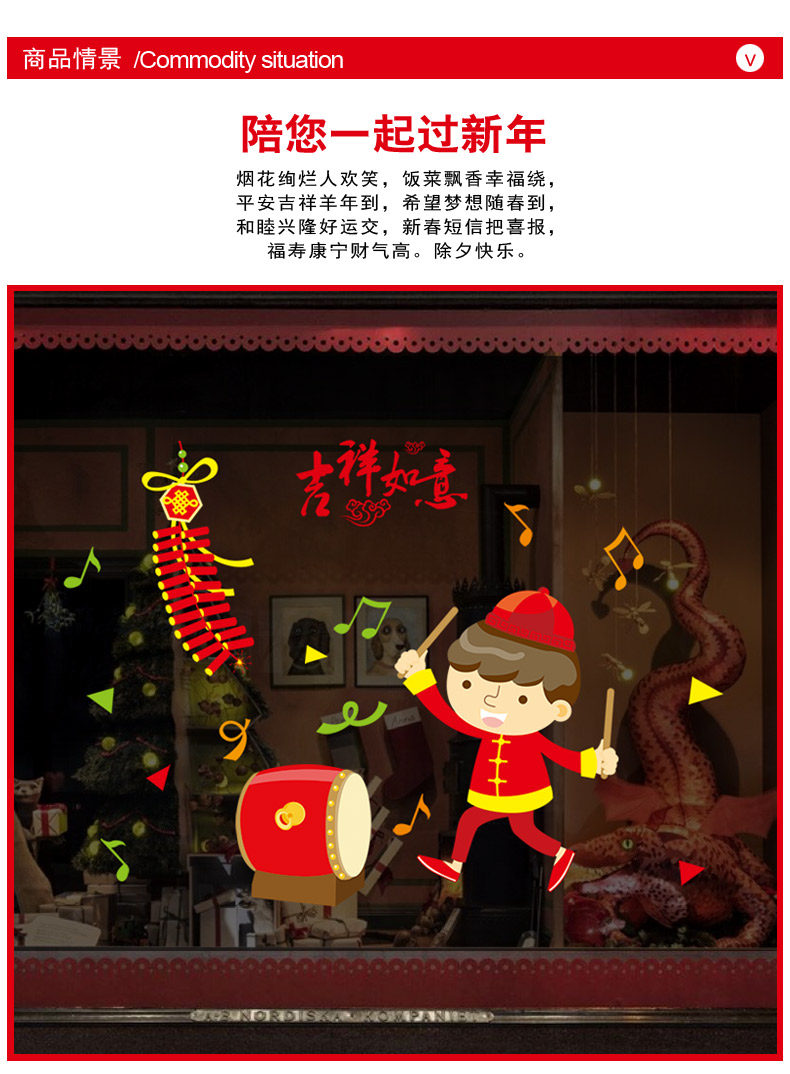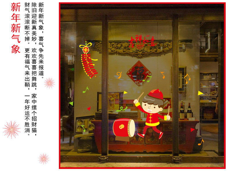 春节墙贴店铺商场门橱窗花玻璃贴纸过新年装饰品喜庆吉祥如意贴纸