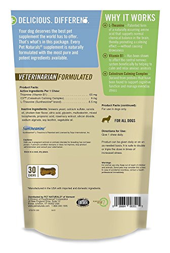 Pet Naturals Of Vermont Calming Soft Chews Have A Chicken Flavor That Dogs Love. They Are Free Of Corn, Artificial Ingredients And Wheat That May Cause Digestive Upset.