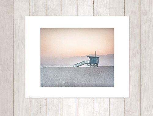 -. Title : 8x10 Matted P.R.Int - Pink Coral Venice Beach Wall Art, California Coastal Wall Decor Picture, 'Lifeguard Tower'