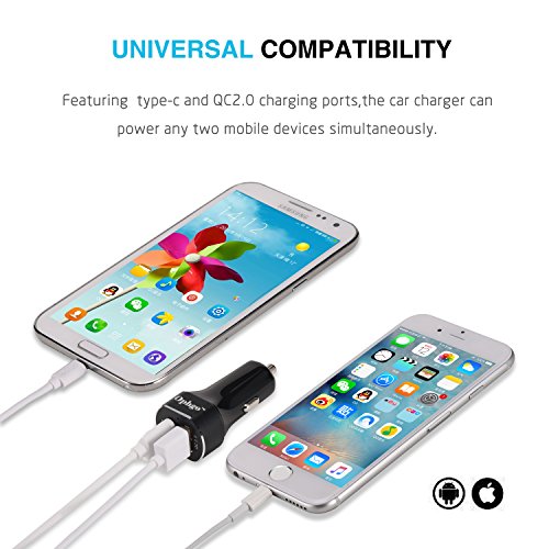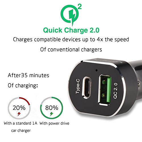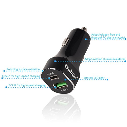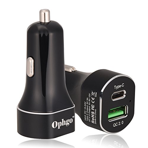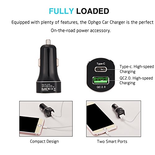Ophgo Fully Loaded Universal Quick QC 2.0 & Quick Type C Ports in Dual USB Car Charger 5V for Nokia N1 tablet, for Google Chromebook Pixel, for Google LG Nexus 6P, for Apple Macbook (Grey)