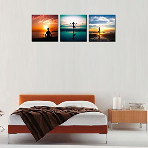 -. Binding : Kitchen -. IsAutographed : 0 -. ProductGroup : Home -. ProductTypeName : HOME -. Title : 3 Panels Seaside Painting Do Excerise Yoga On the Beach Picture P.R.Inted on Canvas Wall Art for Home Decoration Stretched and Framed Ready to Hang