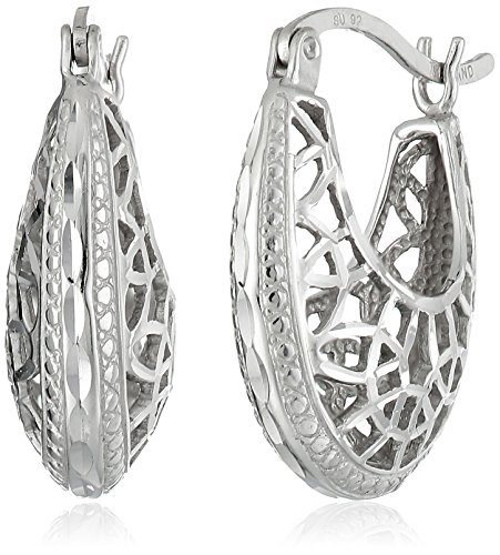 Sterling Silver Filigree Oval Hoop Earrings