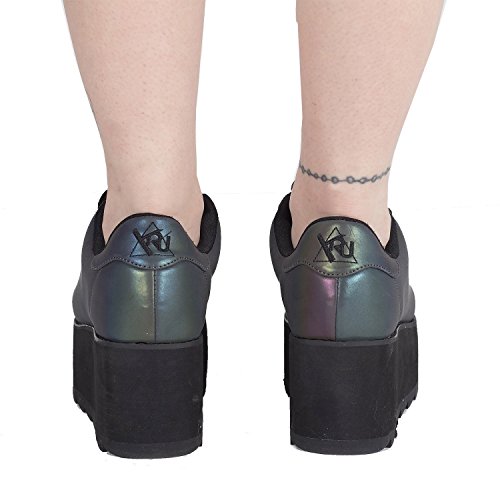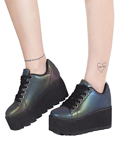 Binding : Apparel Product Description Take a step into the future when you wear the Qozmo Aiire Reflective sneakers by Y.R.U. These iconic festival shoes feature a multicolored reflective PU leather upper with black lace up closure, and super comfy floating air rubber sole bottom that lights up in multiple colors such as blue, red, green. 0
