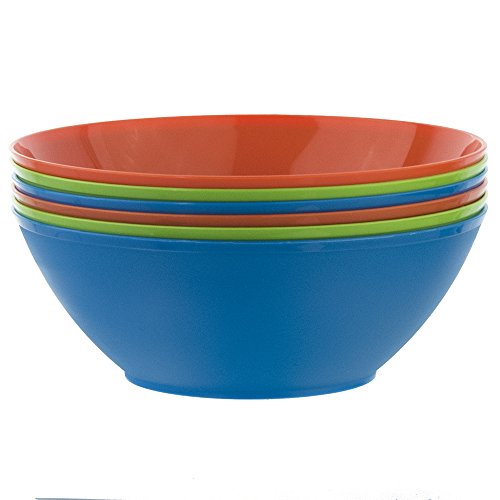A quick and easy solution for your next outdoor party. Versatile enough to be used everyday and durable enough for use by the pool. The perfect unbreakable serving bowl set for any occasion. These bowls are perfect for serving everyday salad, popcorn and chips. A step up from disposable dinnerware, they are also great for the patio or picnic. Set of 6 in 3 assorted colors. These bowls are BPA-free, and made in USA by US Acrylic - a leading manufacturer of the finest quality products since 1978. Also available from US Acrylic for individual purchase from the Fresco Collection are the Fresco Unbreakable Plastic Bowl Nested 6 Piece Set Coastal 12" 10" 8" and Fresco Unbreakable Plastic Bowl Nested 6 Piece Set Tropical 12" 10" 8"Feature