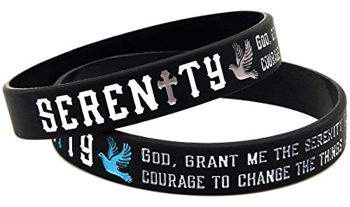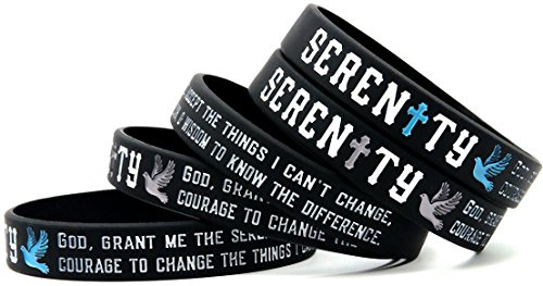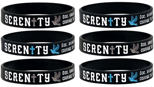 - Pack of 6 "Serenity Prayer" silicone wristbands for serenity, wisdom, & courage