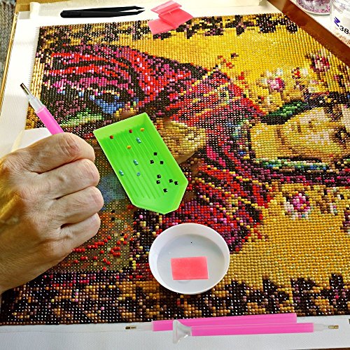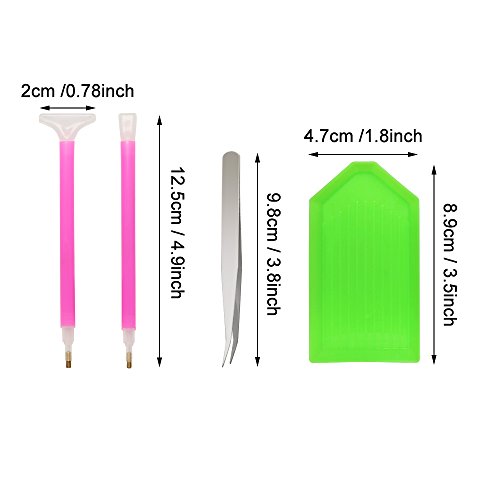 - Package Includes:2 Different types of diamond sticky pen,2 pieces plastic plates,6 pieces of glue,1 piece tweezers,some small storage bags and 1 pieces lovely storage bag,storage all the 5D diamond painting kits and other small tool kits you have,make it more tidy and not easy lost.
