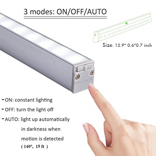 - 【 EXCELLENT MOTION SENSOR 】-- Slide switch in “AUTO”, Auto-on when automatically senses human motion within 3 meters (15 ft) , 140 degree and Auto-off after 15s if no motion detected. AUTO mode could only work in dark place, which can save energy.