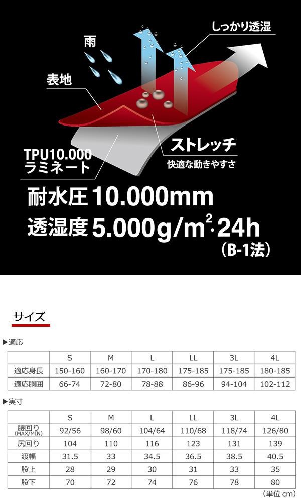 | 仕様 | 耐水圧:10000mm 透湿度:5000g/m2・24h(B-1法) |