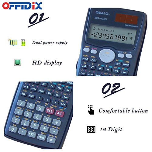 -. Binding : Electronics -. Brand : OFFIDIX -. EAN : 0790996961910 -. Feature : TWO WAY POWER: Solar and battery (LR44*1 inclued) / 12 DIGITS: Allow a lot of data calculation / ENERGY SAVING: The Solar design make the calculator can work in daytime or even in the dim light without battery. / PLASTIC BUTTON: Scientific ergonomic design button, Large buttons and good resetting function can increase your comfortable sensation / LONG SERVING LIFE: the use of frequency up to 1million times -. IsAutographed : 0 -. Label : OFFIDIX -. Manufacturer : OFFIDIX -. MPN : TEN0041 -. PartNumber : TEN0041 -. ProductGroup : CE -. ProductTypeName : HOME -. Publisher : OFFIDIX -. Studio : OFFIDIX -. Title : OFFDIX Office Desktop Scientific Calculator, Solar and Battery Dual Power Electronic Calculator Portable 12 Digits Large LCD Display Calculator for Students,Staff and Teachers -. UPC : 790996961910