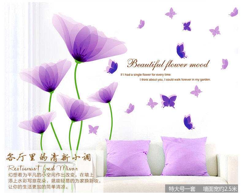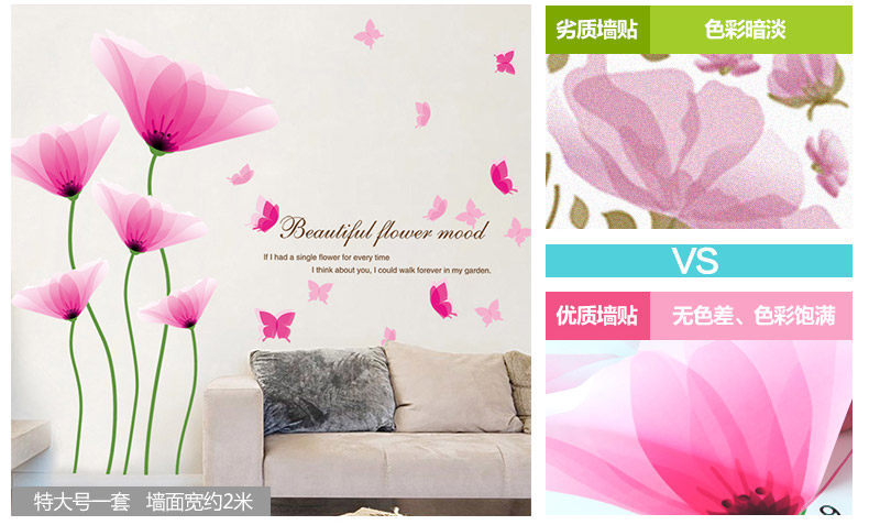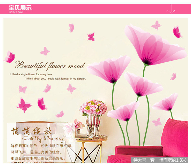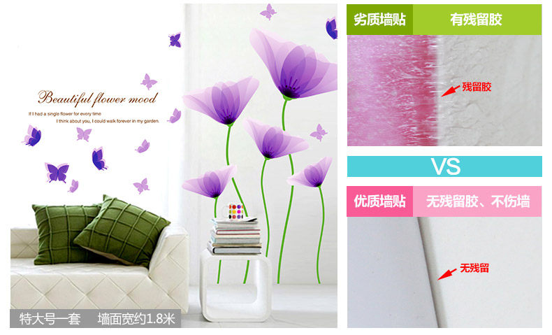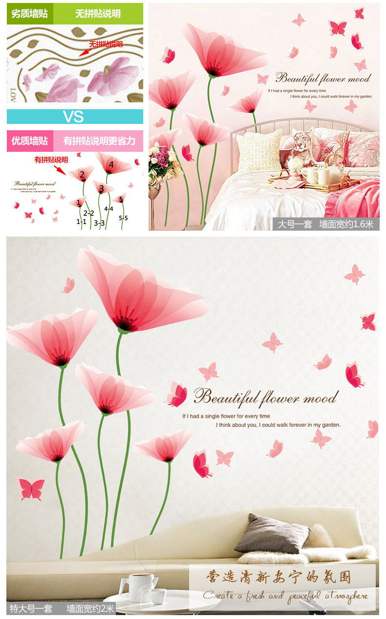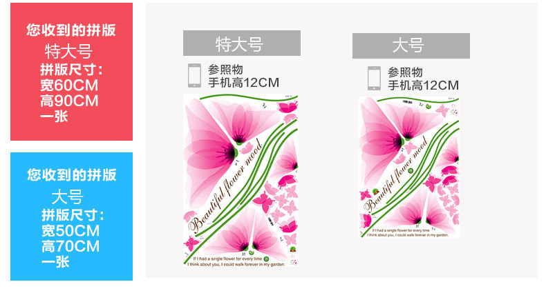 Brand: small Aiai Wall Stickers Type: waterproof wall stickers Style: Modern Chinese Pattern: Plant flowers Pricing Unit: set Wall Sticker Style: Plane Wall Stickers Material: environmental protection PVC, the back with plastic, removable size: Large:W153cm*H107cm King:W193cm*H134cm Sizes, "you receive the goods and typesetting" size and "collage after size reference" Our tile size for reference only, you can combine according to room size freedom