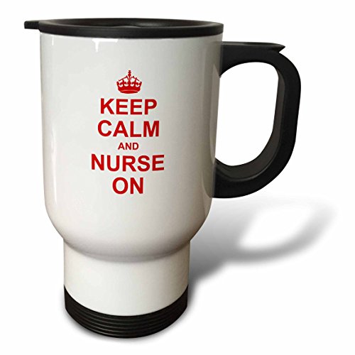 3dRose tm_157744_1 Keep Calm and Nurse on Carry on Nursing Job Nurses Day Gifts Red Fun Humor Humorous Travel Mug, 14-Ounce, Stainless Steel