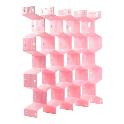 KLOUD City Household Pink Plastic Partition Bee Style Underwear Socks Bras Ties Belts Scarves Drawer Divider Cabinet Clapboard (Pink)