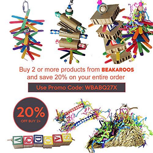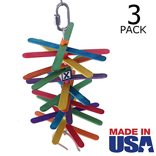 Popsicle Sticks Bird Toy for Small / Medium Birds - MADE IN USA - Multi-Pack by Beakaroos - Parakeet Cockatiel Conure Parrotlet Lovebird Shredder