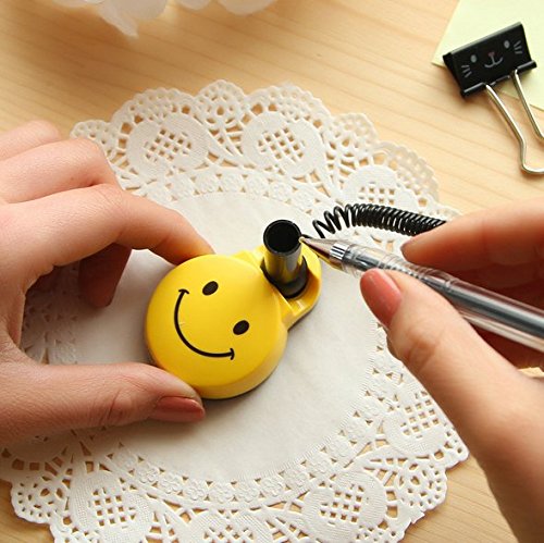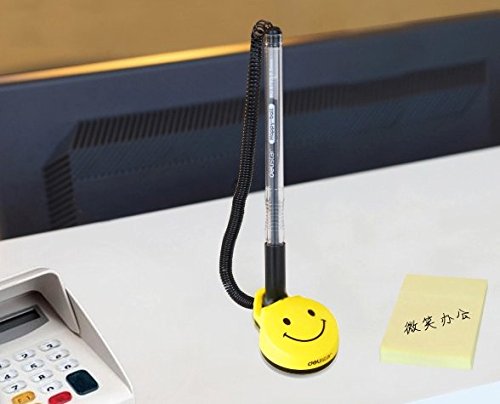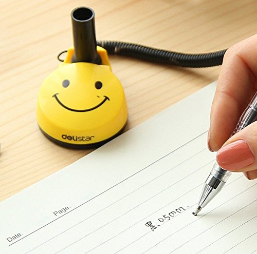 -. Feature : Rotatable smile face counter pens / Black ink pens with 0.5mm ballpoint / Keep your pens from walking away with telephone-style plastic coil / Adhesive-backed base is simple to apply - no screws, no holes / Ideal for banks, retailers, office lobbies, hotel lobbies, tuition offices, unemployment offices etc.