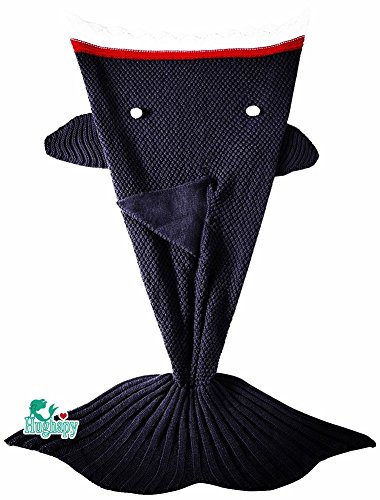 Hughapy knitted Mermaid Tail Blanket for Adults Teens,Kids Crochet Snuggle Mermaid,All Seasons Seatail Sleeping Bag Blanket (71"x32", Dark Grey Shark)