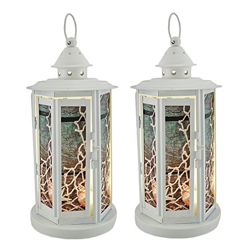 -. Title : 2 Piece Seashell White Beach Theme Metal LED Candle Lantern Set