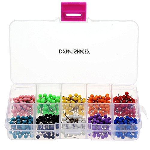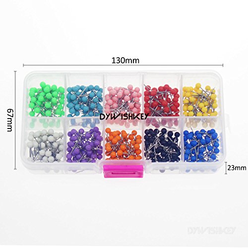DYWISHKEY 500 PCS 1/8 Inch Round Head Map Tacks Pins Stainless Point with 10 Assorted Colors Map Tacks (Each Color 50 Pcs)