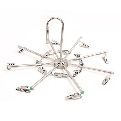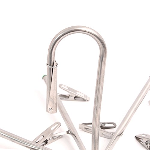 Aligle Stainless Steel Foldable Portable 16 Clip Drying Hanger Travel Clothes Hanger Drying Rack Hook multi-function Drip Hanger for Sock Towel Bra Hat Rack Scarf