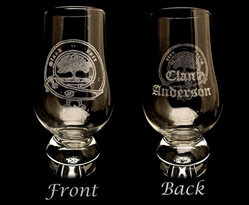 Product Description Clan Anderson Scottish Crest 6oz Whiskey Glass: Clan Anderson Blazon: Out of a wreath of the liveries An oak tree proper Clan Anderson Motto: Stand Sure, "Stand your ground with confidence" This Whiskey Glass is engraved the Clan Anderson Crest and the words "Clan Anderson" opposite in Old English Font. The Clan name Anderson and/or MacAndrew means "servant" or "son" "of St. Andrew"- Patron saint of Scotland. Clan comes from the Gaelic word "clann" which is translated to "children," used to identify familial groups giving a common sense of generational connection. In Scotland the Clan system that is, Scottish Heraldry and Coats of Arms are regulated to this day by Lord Lyon who manages the Scottish Public Registers of Arms and Genealogies. For more information please send us a message and we will gladly recommend some historically reliable literature and websites.The engraving will not fade and the glass is dishwasher friendly. The glass is hand blown glass by Barconic. Glass Dimensions : Height : 4.5" Width : 2.5" Volume : 6oz *Free Personalization *We will replace any glass damaged during shipping promptly and free of charge 0