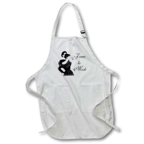 3dRose apr_164659_4 Jaime La Mode Lady French Vintage-Full Length Black Apron with Pockets, 22 by 30-Inch