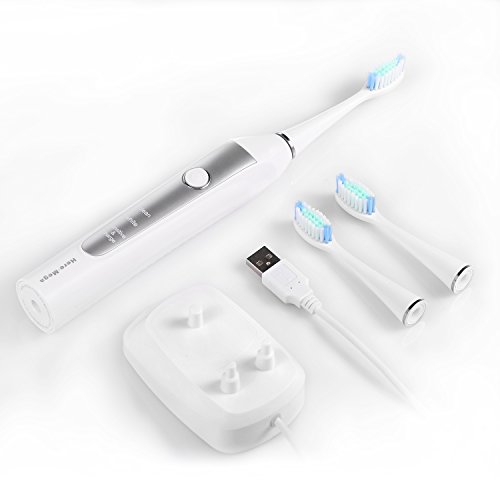 Key Features 1: Advanced Sonic-Technology up to 33,000 vibrations rate per minute. 2: 3 Modes of CLEAN (33000 vibrations), WHITE (30000 vibrations), and SENSITIVE (28000 vibrations) for daily clean, gum care and sensitive gum. 3: Dentist-recommended 2 Minutes Smart Timer with 30s interval pause to encourage good brush habits. 4: IPX7 waterproof can be cleaned under the faucet and convenient use during bath and shower. 5: The Anti-skip handle is easy to hold and Extra soft DuPont Bristles are gentle on teeth/gums. 6: The rechargeable toothbrush can be used last for 1 month (2 times/day) after fully charged.