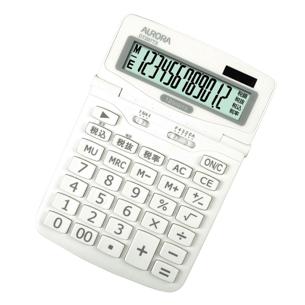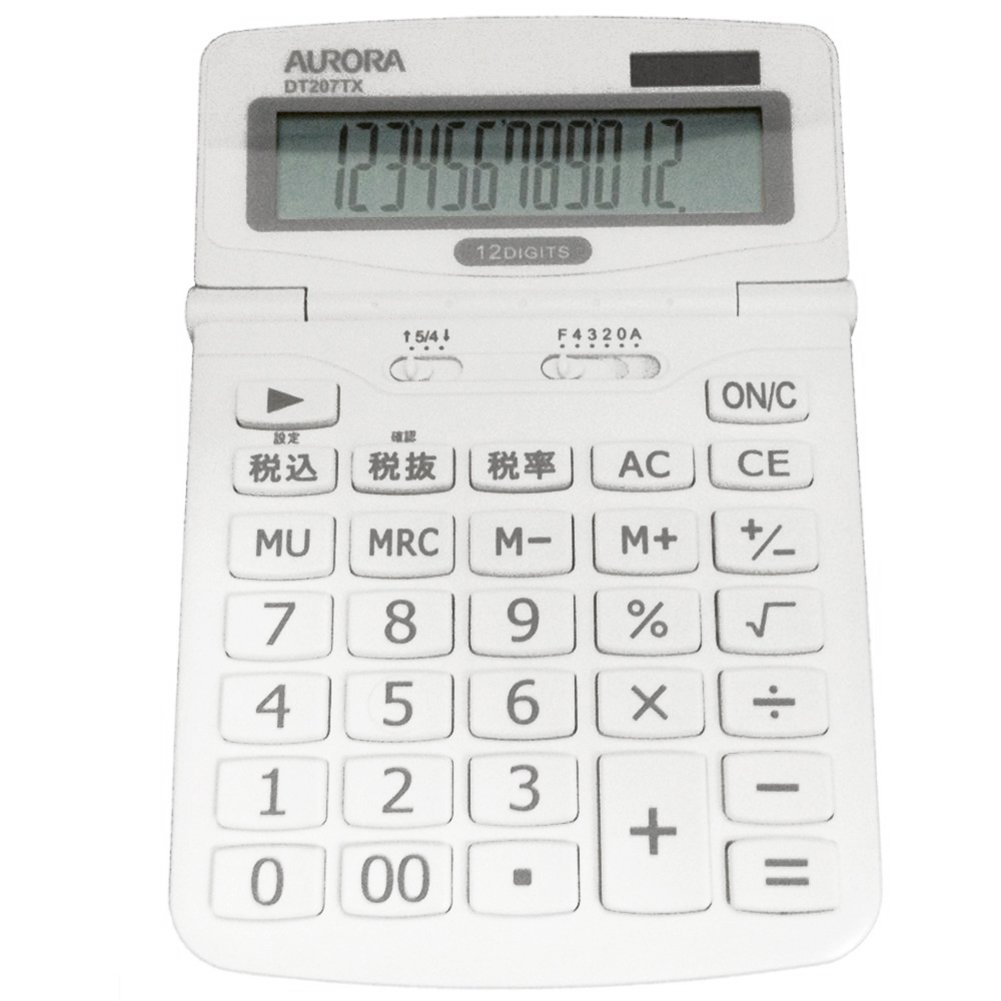 Aurora Japan large desk calculator tax calculation function with white DT207TXW