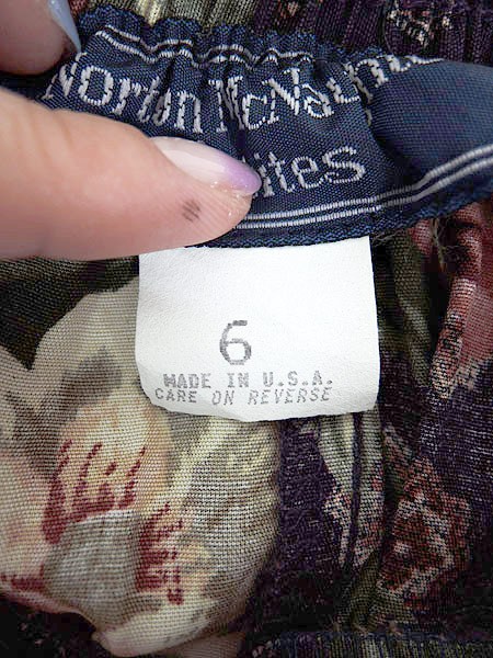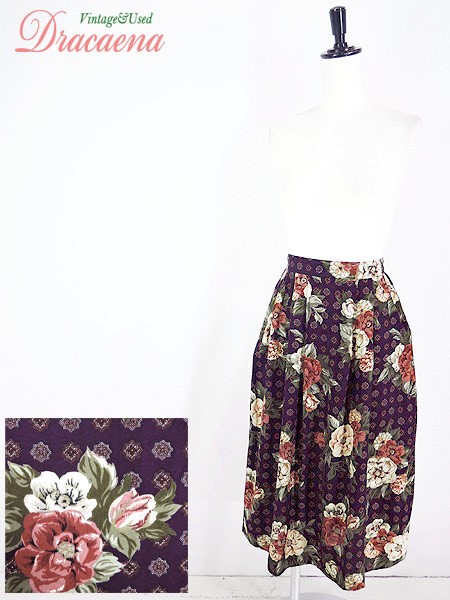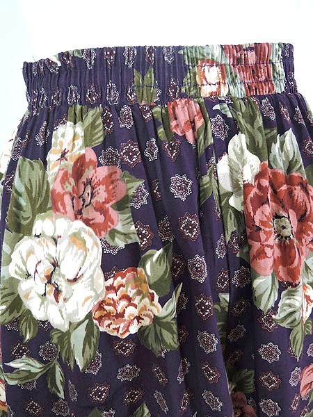 Ladies ブランド- カラー紫ベース メール便不可 コンディション★★★ 素材レーヨン 表記サイズ6 スタッフコメント裏地無し。ウェスト後ろゴム入りの為、伸縮あり。 実寸サイズ 着丈 70 cm ウエスト 62cm 〜 78cm (24インチ〜31インチ) ※ウエスト・ヒップ以外は平置き採寸