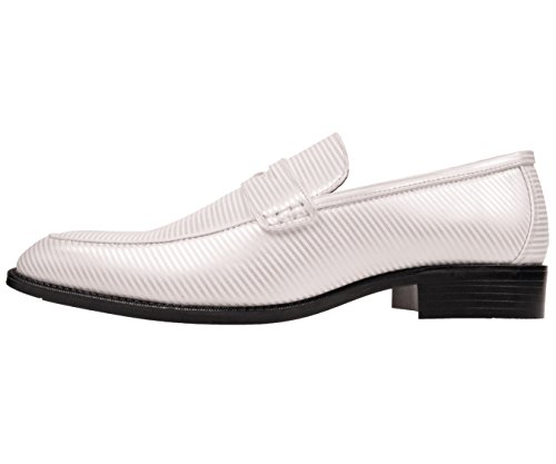 Product DescriptionBolano Classic Mens White Striped Penny Loafer Slip On Formal Dress Shoe: Style Henry-0070