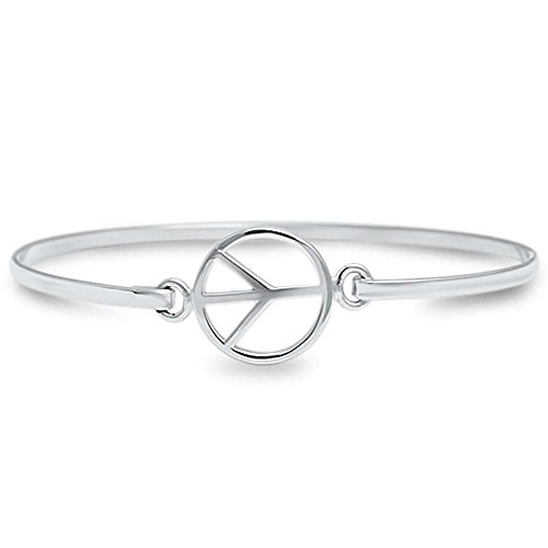 -. Title : Peace Sign .925 Sterling Silver Bangle Bracelet