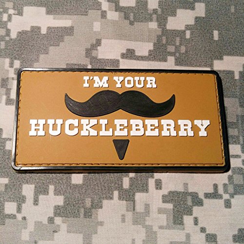 HIGH QUALITY PVC MORALE PATCH featuring I'm Your Huckleberry. Hook velcro sewn on back so can be applied to any loop velcro surface. Not glued! Patch is extremely durable and cleans easily with warm water and soap.