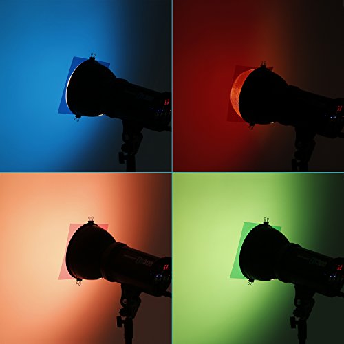- Feature : This color filter set consists of 6 pieces 7"x8"/18 x 20 cm gel sheets (red,blue,green,cyan,yellow,&magenta) / Made of high light transmission materials with light weight, steady color temperature and low loss. / Primary colors:red,blue & green and secondary colors: cyan,yellow,& magenta / Color filters are used for experiments involving additive and subtractive color, color mixing, color transmission, absorption and filtering of the different wavelengths of light. / Colored gels for lights used in film,video,photo,stage,theater,party,and dj lighting.Note:The Strobe Flash is not included.