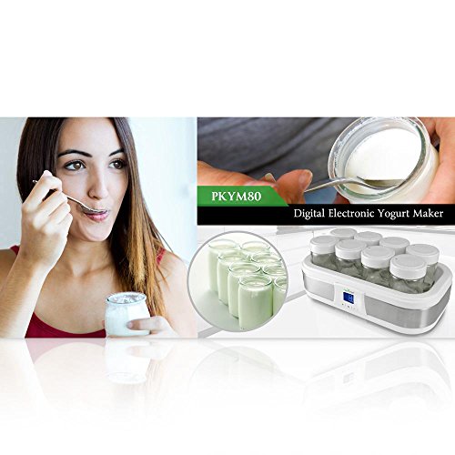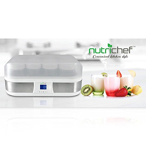 NutriChef PKYM80 - Electronic Yogurt Maker Machine with Digital Display Timer Function - 8 Glass Jars