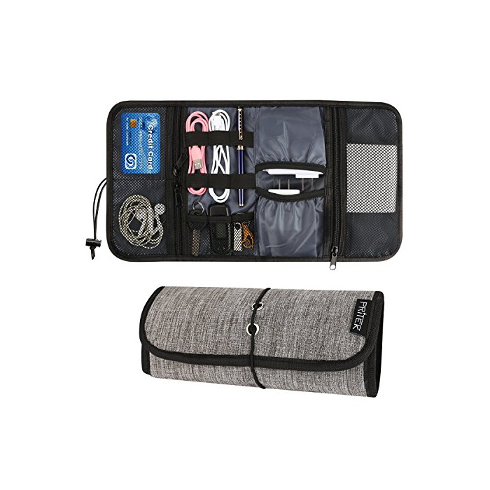 PRITEK 수납 파우치 PC소품 수납 가제트 케이스 이어폰 마우스 sd카드 케이블 정리 공구 만들어 넣음(담는 그릇·상자 등) 여행용 내수성 내구성 경량 그레이