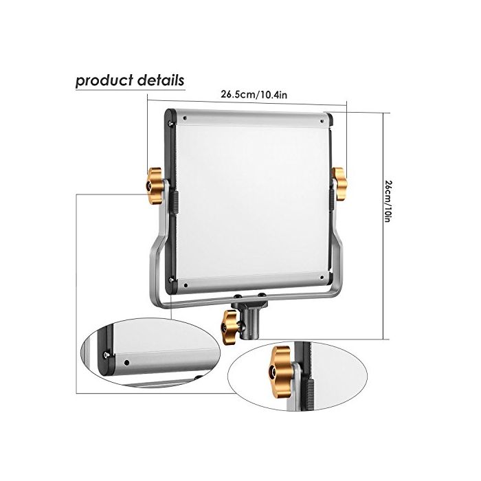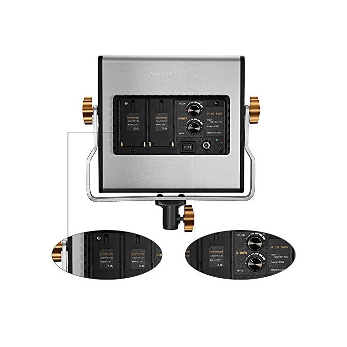조광가능한2 색LED라이트:240개의 백색과 240개의 노란색 오래 가는 LED전구에,텅스텐-주광3200K-5600K색 온도부터의 가변 화이트 밸런스를 비춥니다.U마운트 bracket는 촬영 환경에 따라 촬영자가 조명 각도를 조정하는 것 를 할 수 있습니다.