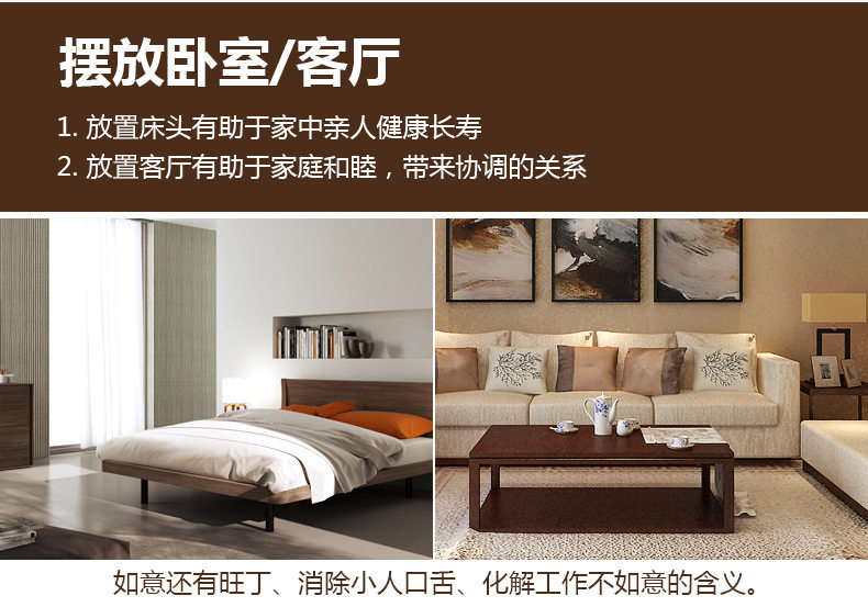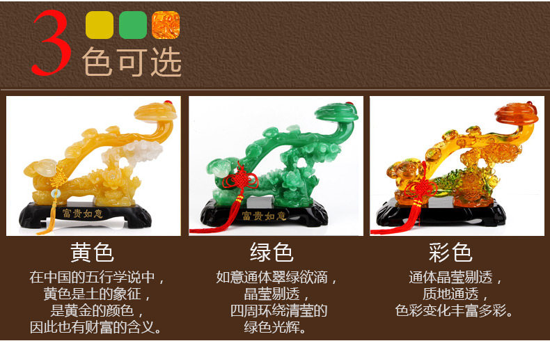 产品介绍: " 如 意"一种象征祥瑞的器物,寓意:"如愿以偿"及"事事如意"的意思。所以赠送如意没有错的。而福禄寿三星的"禄"星便是手持如意了。摆放于家中,能使诸事 顺遂,一切吉祥如意,福寿安康。是赠送亲友的最佳礼物。如意"本意为"如愿以偿""事事如意""吉祥如意",如意摆放家中是必不可少的一件招财纳福化煞之 宝,或是作为礼品送给至亲好友,都有旺财纳福之意。尤其是与金蟾、麒麟、聚宝盆等一起摆放,更可增福气、助财运! 现如今的会面、通信也会相互祝愿对方"万事如意"、"吉祥如意"等用语,即随人意。从字面上讲,如意无非是符合自己的意愿。寓意的抽象,是极易能让人理 解的。其实如意不光是抽象,还是具象的"如意"。如意在民间有种种的说法,如事事如意、平安如意等,祝颂吉祥者也。 |