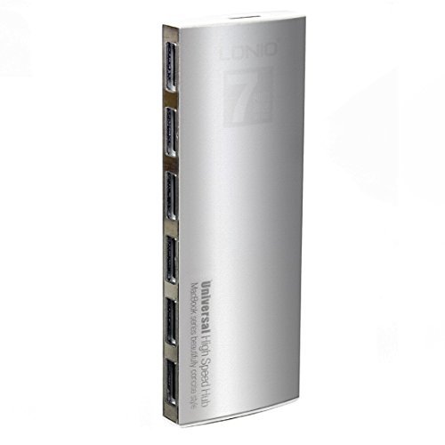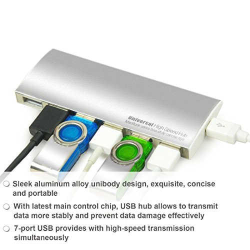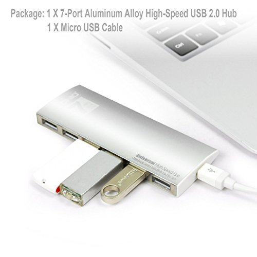 Black Menba 7-Port Universal Rapid Aluminum USB Hub/Adapter 2.0 with 37" Micro USB Cable(Silver)