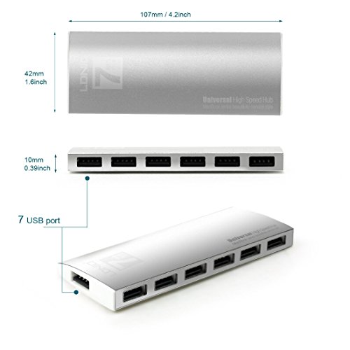 Black Menba ultra-mini aluminum alloy 2.0 USB hub makes it a perfect match to your devices. With 7 additional USB ports, you can connect any USB devices to one convenient place organized, offering you more desktop space. Rates up to 480 Mbps transmission, super speed 2.0 USB hub is downward compatible with USB 1.1 specifications, allowing you charge your USB devices rapidly and stably. With an overlength 95cm Microsoft USB cable, this super slim and lightweight USB hub brings you convenience and organization when you are in office or study.