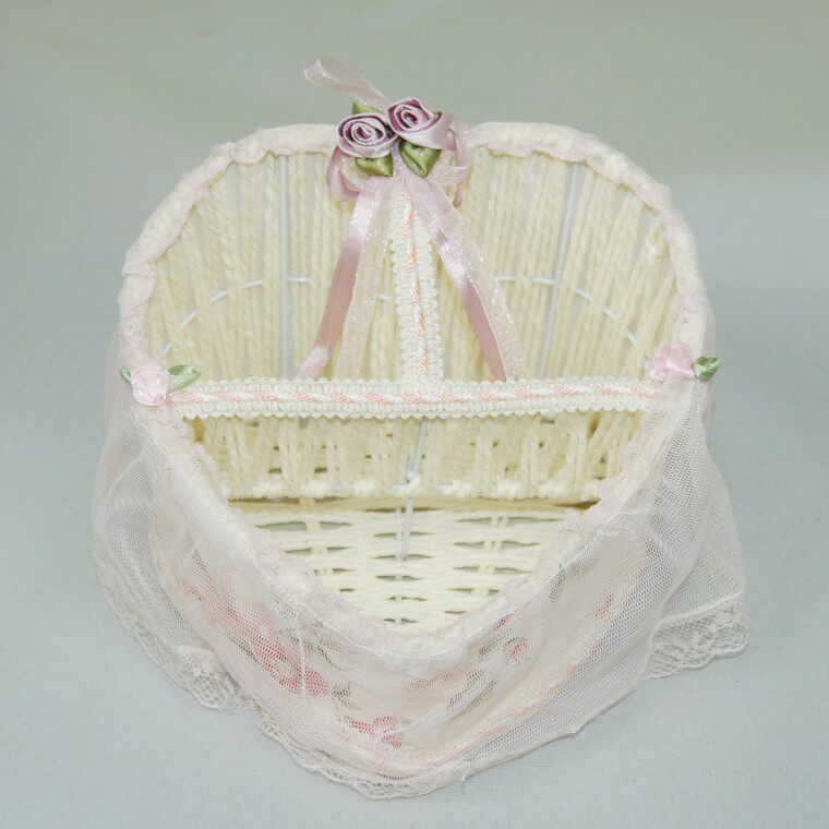 Wire bracket a braided rope, is surrounded by warm rose fabric, lace edge withromantic fantasy, can be used for placing the remote control, mobile phone keys,and other small items, stationery.