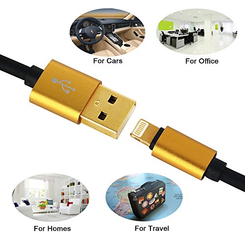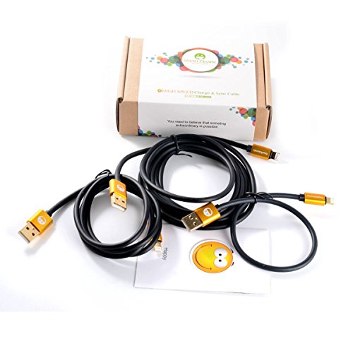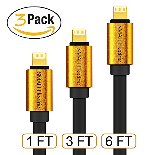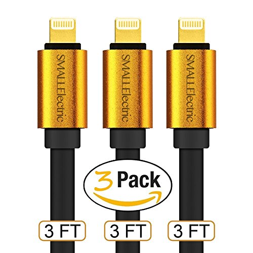 Smallelectric 3-pack Alloy Gold-Plated 8pin Lightning Cable Sync Extra Long USB Cord Charger for iphone 6 / 6s plus / 6 plus / 5s 5c 5 / iPad Mini / iPad Air / iPod