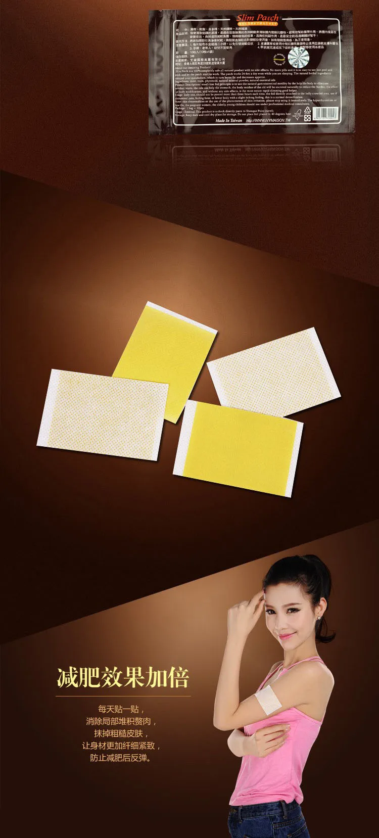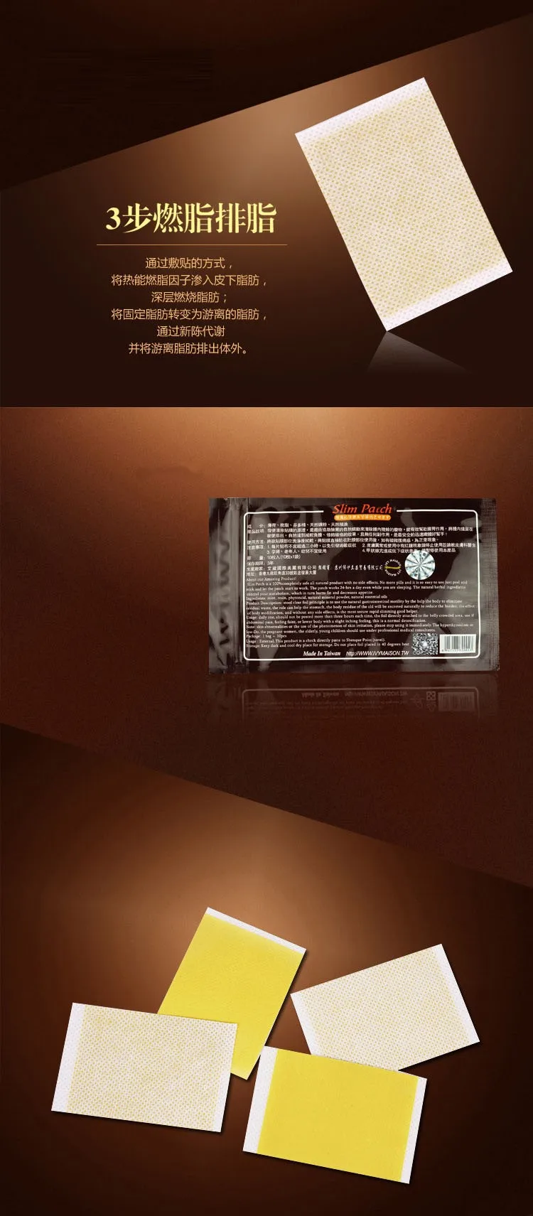 每日一次,每次不应超过三个小时,箔片直接贴在腹部拥挤的地方,使用如果腹痛,感觉微弱,或下半身有轻微的瘙痒感,这是正常的排毒。