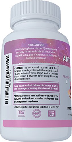 Are you experiencing Anxiety and Stress??Feeling depressed or exhausted? Anti Anxiety Stress Relief Formula offers support that keeps you?calm, positive and relaxed - bringing your mind and body in a peaceful state. Sometimes work, home, crowds, and people in general can be overwhelming.? WHY IAR NUTRITION? ??The Perfect Blend of natural herb ingredients was developed to provide maximum results. It's a premium blend of 900mg plus of Ashwagandha, St. John's Wort, B Vitamins, L-Theanine, 5-HTP, Gaba, Chamomile More. ? Relieves Stress Anxiety ? Supports a Positive Mood ??Calms Mind Relieves Exhaustion ??Protects from Inflammation and Depression ??Promotes Better Sleep Quality ??Delivers Social Anxiety Relief Friendly and Respectful Customer Service?from IAR NUTRITION. Feel free to contact us with questions or comments! We stay strong to make your experience flawless! ? If you're ready to keep moving forward feeling positive, relaxed and focused, click 'Add to Cart' to experience powerful Anti Anxiety Stress Relief Supplement for yourself! 0