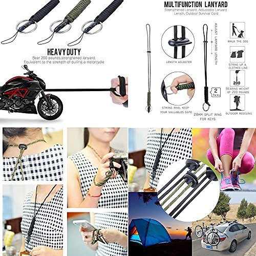 Genenic Necklace Paracord,Military Grade Utility Paracord Lanyard Keychain Survival Lanyard Necklace with Metal Ring Hook For Hiking Camping Fishing Hunting (3 PACK)