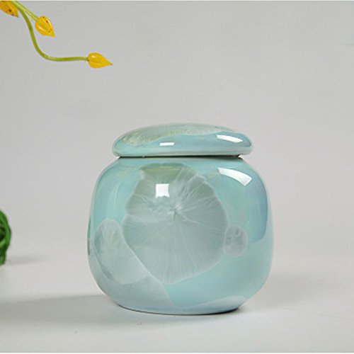 Crystalline glaze Elegant Mini Porcelain Airtight 30g Matcha Tea Caddy Pills medicine Powder Storage Keep Clean and Fresh Tea Accessory (Blue)