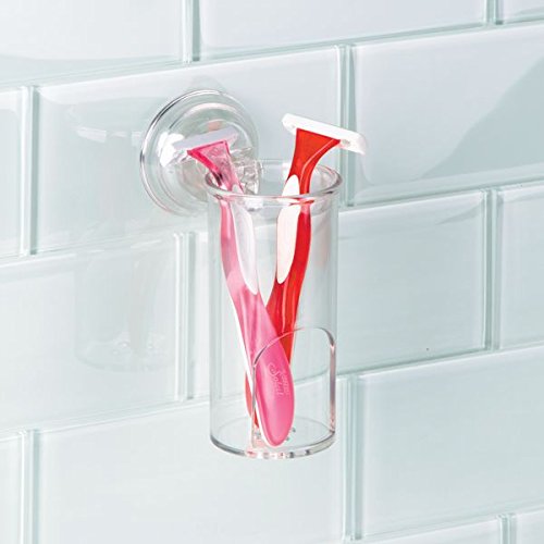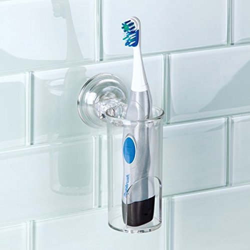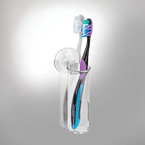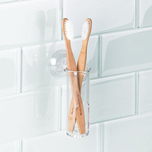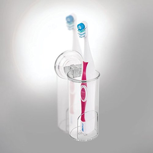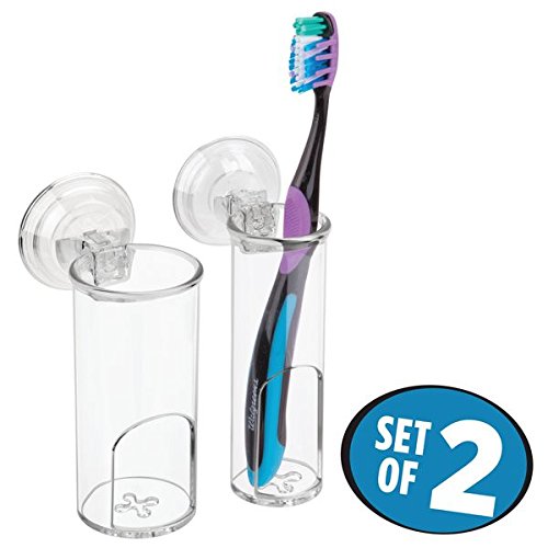 mDesign Suction Cup Toothbrush and Spin Toothbrush Holder for Bathroom- Set of 2, Clear