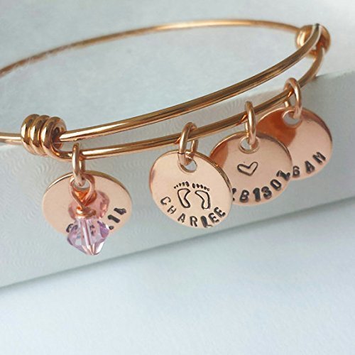 -. Title : Personalized Rose Gold Mommy Bangle Bracelet Birth date Charm Birth Weight Charm Birth time Charm New Mommy Birthstone Bracelet