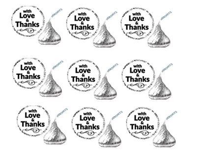 CakeSupplyShop Item#45644 with Love and Thanks Thank you Party Favor Hershey's Kisses Stickers / Labels -216ct