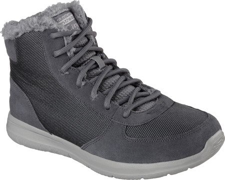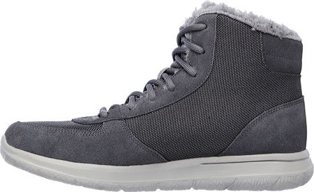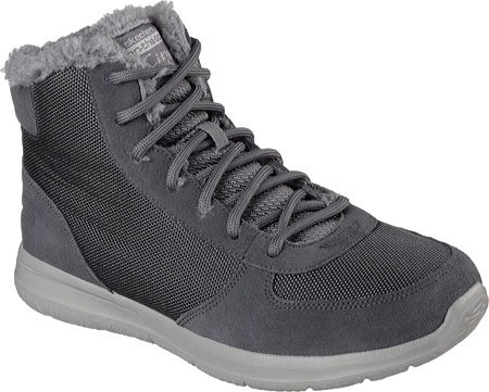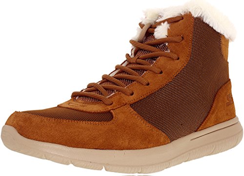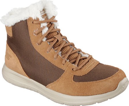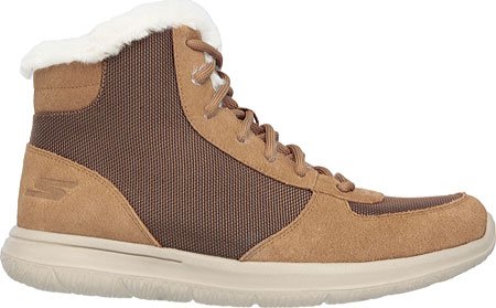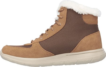 Binding : Apparel Product Description A classic sporty look combines with advanced comfort technology in the Skechers On the GO City shoe. Soft suede and woven cordura nylon mesh fabric upper in a lace up sporty casual comfort high top sneaker with stitching accents and faux-fur trim. Goga Mat insole. Features high-rebound cushioning with responsive feedback. Combines a proprietary 'SQUISH' component with our exclusive Resalyte® material. Goga Mat® Technology. Resalyte® proprietary lightweight injection molded compound with memory retention in midsole. Agion® insole inhibits odor, provides long lasting cushioning and wicks away moisture. GOimpulse sensors on outsole for shock absorbing comfort. Water resistant upper with Scotchguard® treated materials. Soft suede upper; Woven cordura nylon mesh fabric panels on front and side Lace up athletic casual high top sneaker design Embossed side S logo Lace up front Soft faux fur collar trim Fully lined in soft plush faux fur Stabilized outsole design for added comfort. 0