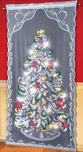 - Title : Set of 2 Decorative LED Lighted Christmas Tree Window Sheer Curtain Panel Holiday Home Accent Decor
